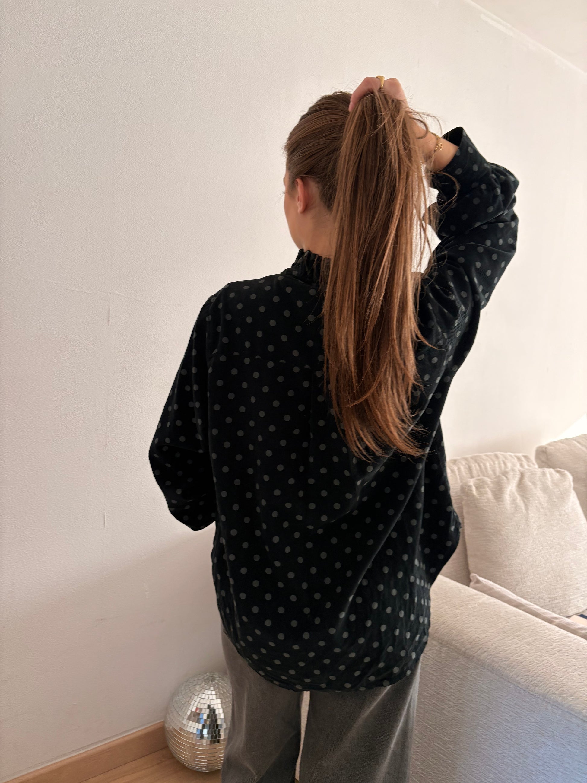 chemise Simone en velours noir à pois gris