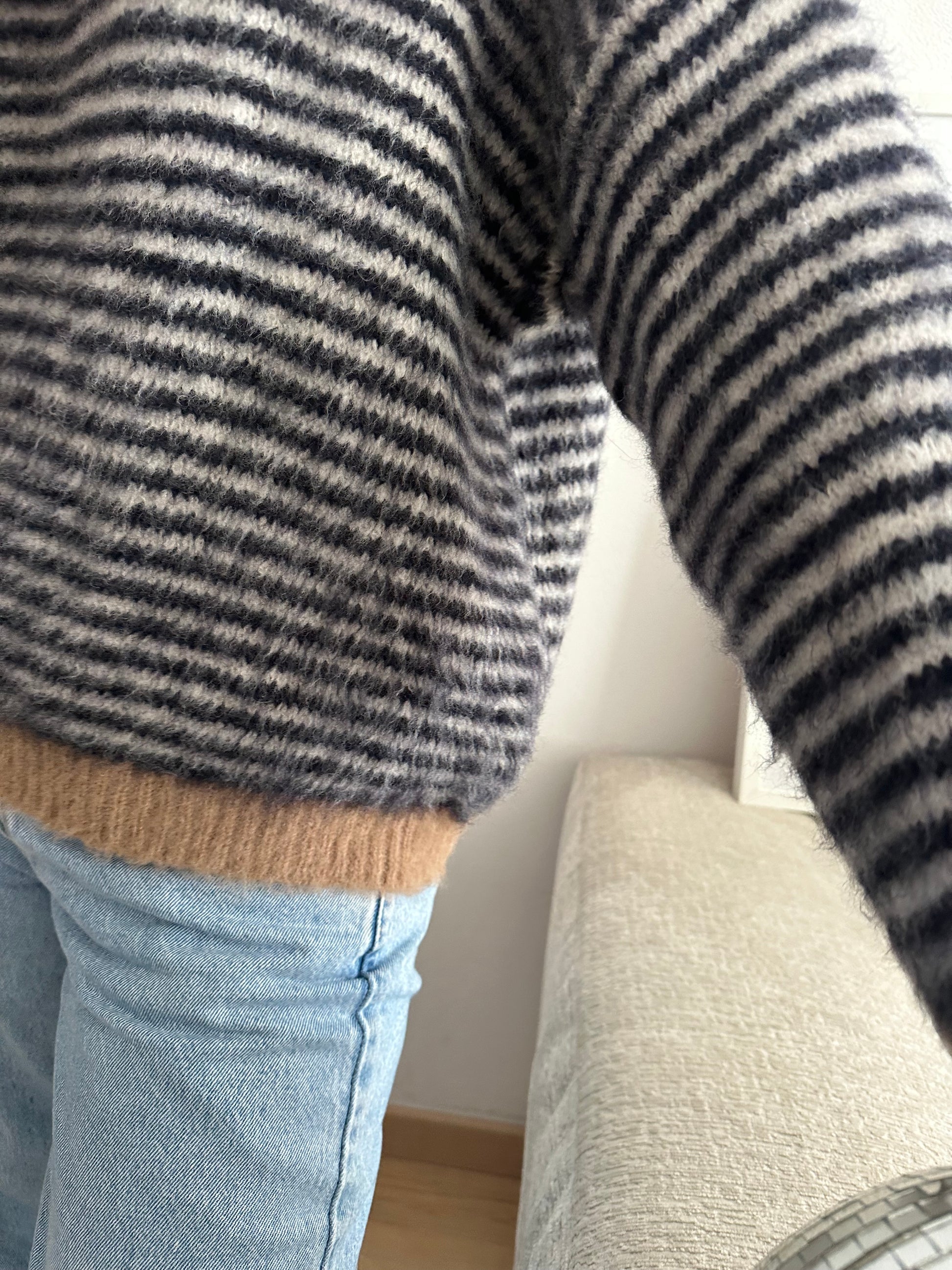 Le pull Harry à rayures bleu marine au col beige est la pièce parfaite pour un look cosy et décontracté.