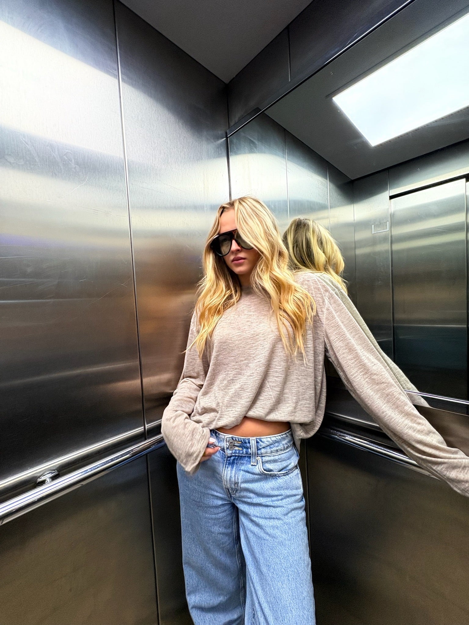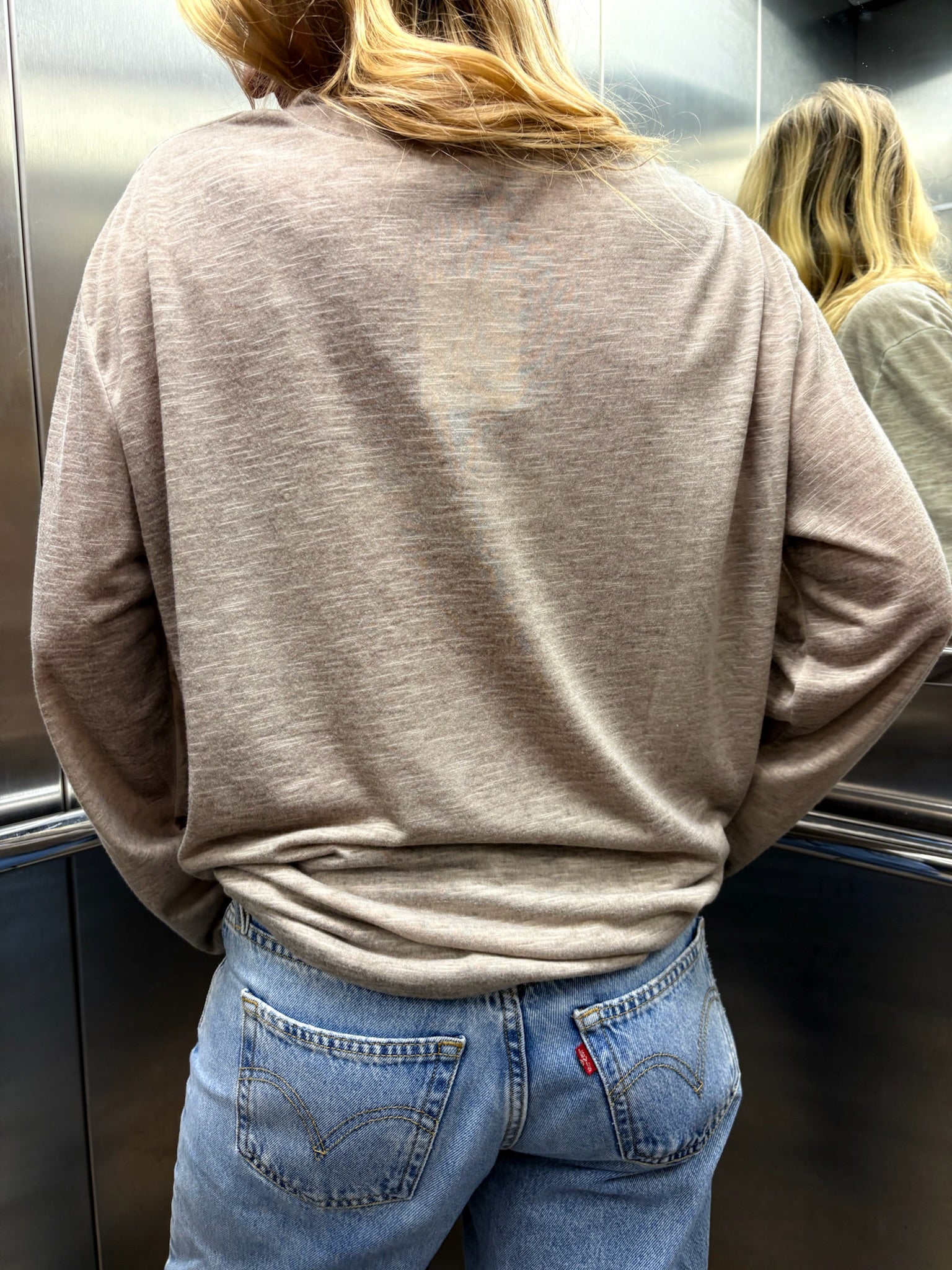 Adoptez notre t-shirt oversize Roman à manches très longues beige chiné.